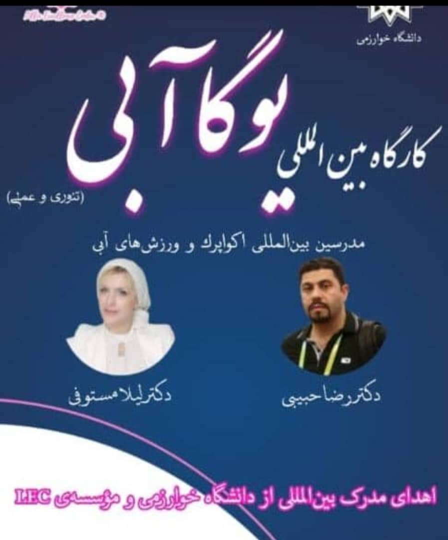 نظمت کلیه التربیه البدنیه والعلوم الریاضیه فی کرج، بالتعاون مع معهد LEC الدولی، ورشه عمل متخصصه ودولیه للیوغا المائیه (نظری وعملی).